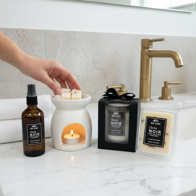 This scent blends the succulent sweetness of Dark Cherry with the romantic elegance of Red Rose, all anchored by a smooth, woody base of Sandalwood. It is the ultimate fragrance for creating an atmosphere of mystery and modern luxury.
