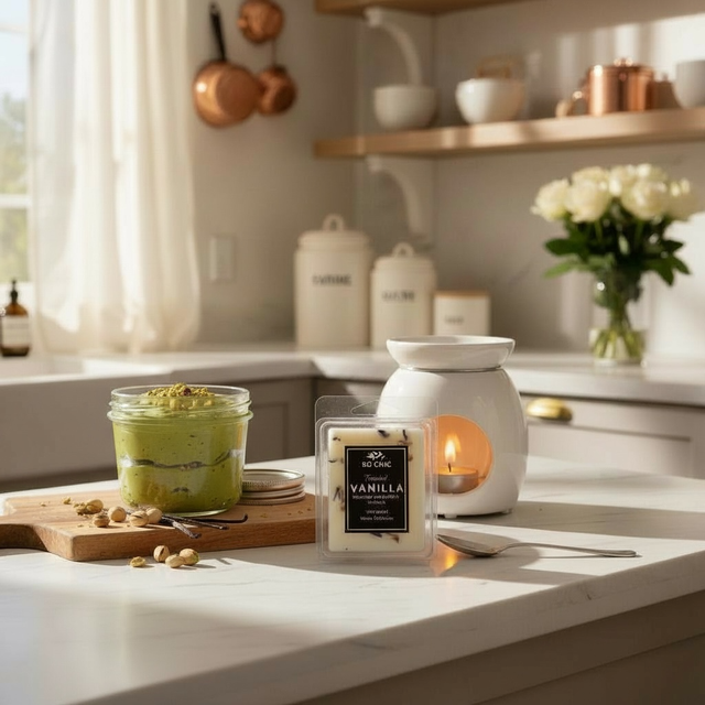 Imagine a fresh batch of gooey, homemade pistachio cookies, straight from the oven. The air is thick with the tantalising aroma of golden-brown dough and the rich, nutty crunch of roasted pistachios. Now, add a generous swirl of sweet, creamy vanilla glaze that melts right into the warmth. That’s the feeling we’ve captured in our home fragrance.